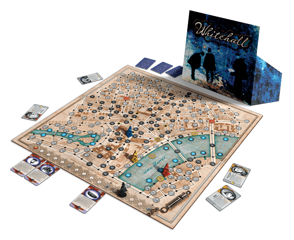Another one of my favorite styles of games is the 1 vs. all type. In Whitehall Mystery, one player plays as Jack the Ripper, and the rest of the players are the police trying to stop him. The Jack player will be trying to get to 3 points on the map without getting caught. The police are trying to cut him off, locate him, and arrest him before he can do that. The Jack player has several special abilities to help him get out of trouble, and each police officer has its own special power that lets them contribute in different ways. The game creates “stand-up moments” for the police as they are searching and trying to arrest and silent tension for the Jack player as they are trying to find a way to escape. One of the simplest versions of this style of game that everyone should give a try.