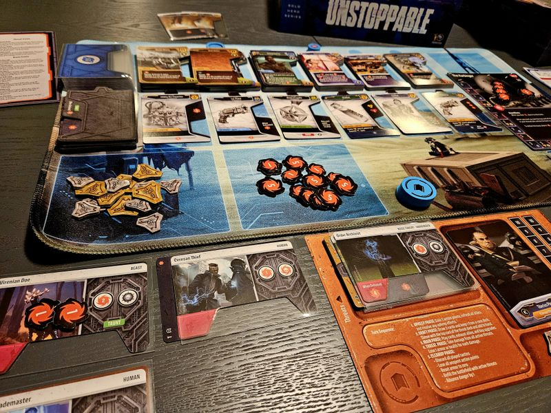 Unstoppable is a solo or two-player card crafting game. The game is by one of my favorite designers, John D. Clair, and uses his invention, card crafting. In Unstoppable, you are playing cards to defeat enemies and eventually make it to the boss to defeat them. However, unlike other card games, you don’t just draw cards from a deck into your hand. In order to get more cards, you must defeat enemies. Those enemies become cards in your hand that you can use to defeat more enemies. You can also buy upgrades to cards to make them stronger, but those upgrades also make the enemies you need to defeat to get that card stronger. It is a neat concept that I really enjoyed. This is getting a reprint in the Dungeon Crawler Carl universe, and I think it is going to be amazing.