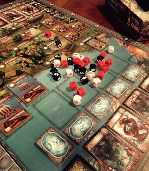 We don’t play many expansions for games; however, Champions of Midgard is one game I will not play unless at least one expansion is included. The expansions turn a good game into a great game in this case. Champions of Midgard is a worker placement game with a Viking theme. You are collecting resources to fight monsters, go on journeys with your long ship, and die for glory to earn points. The game uses dice as your warriors. Each one has different custom colors and values and will provide special abilities based on how they are rolled. This game is getting a big deluxe reprint this year and will probably hit the table more often.