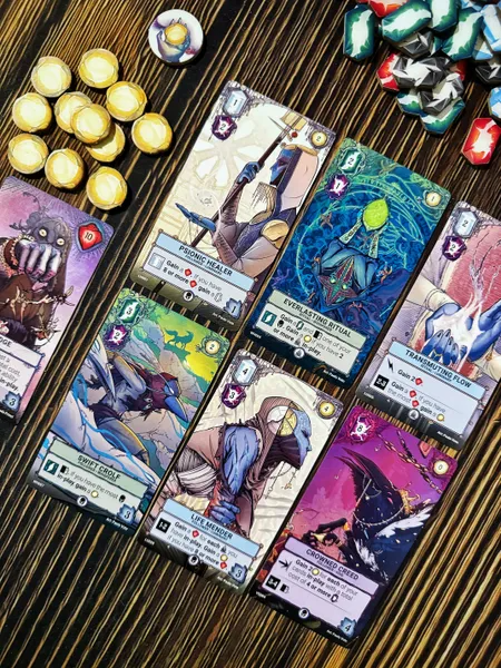 I knew this game would be high on my list as it basically replaced a game that had been up there for the past few years. Res Arcana, which was at one point in my top 10, is no longer in the top 100 and it's because of Etherstone. This is a minimalistic engine building game. You only get 7 cards and a leader for the entire game. You have to find some way to use those cards to score points or defeat threats in order to win. The cards you play give you additional abilities or ways to defeat the threats on the board. They make some actions stronger and allow you to more easily score points, but you really do have to find synergy between the cards in your hand in order to come out on top. It also helps that this has some of my favorite art in any game. I hope this game gets a wider release because it is definitely worth it.